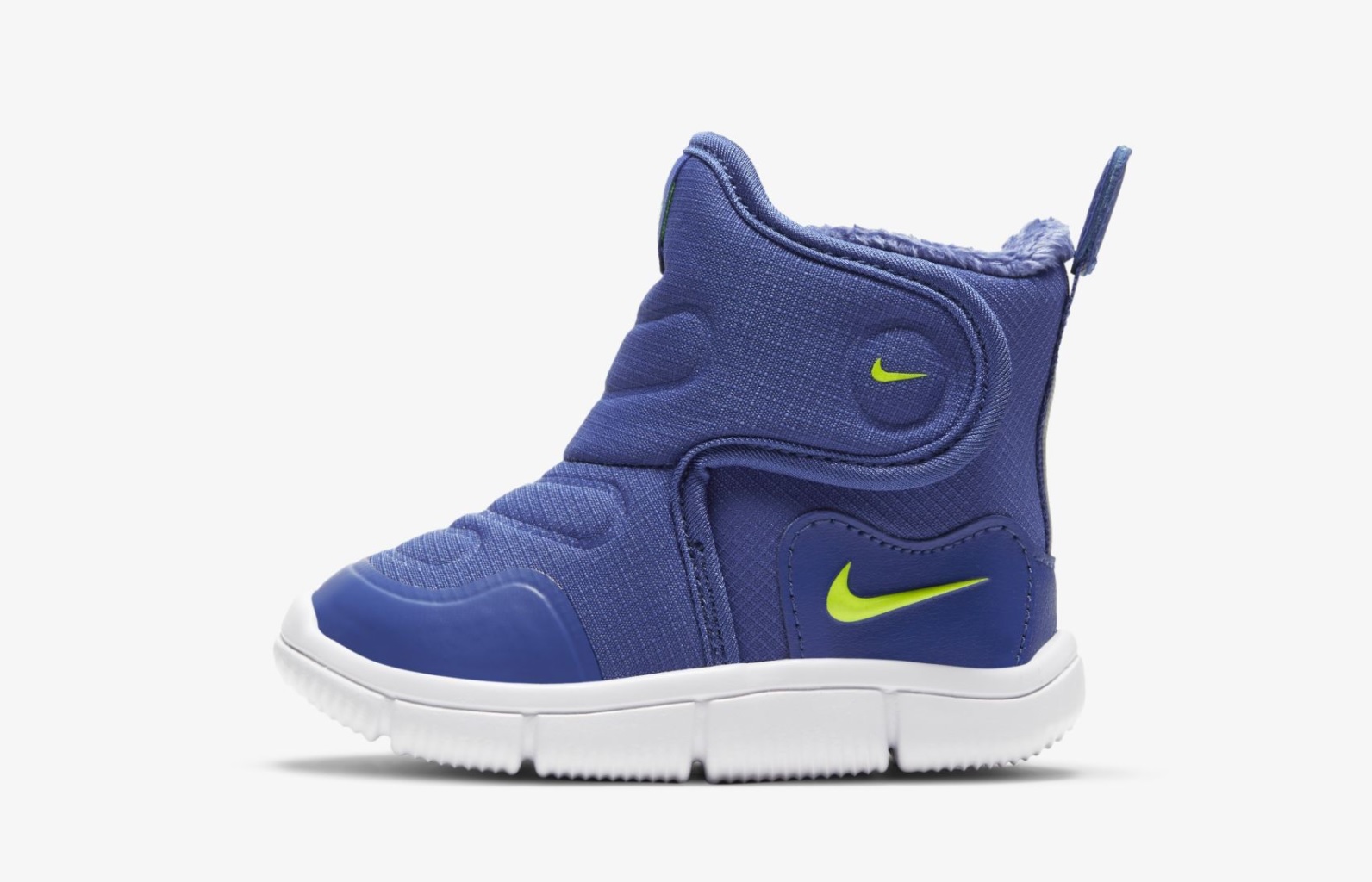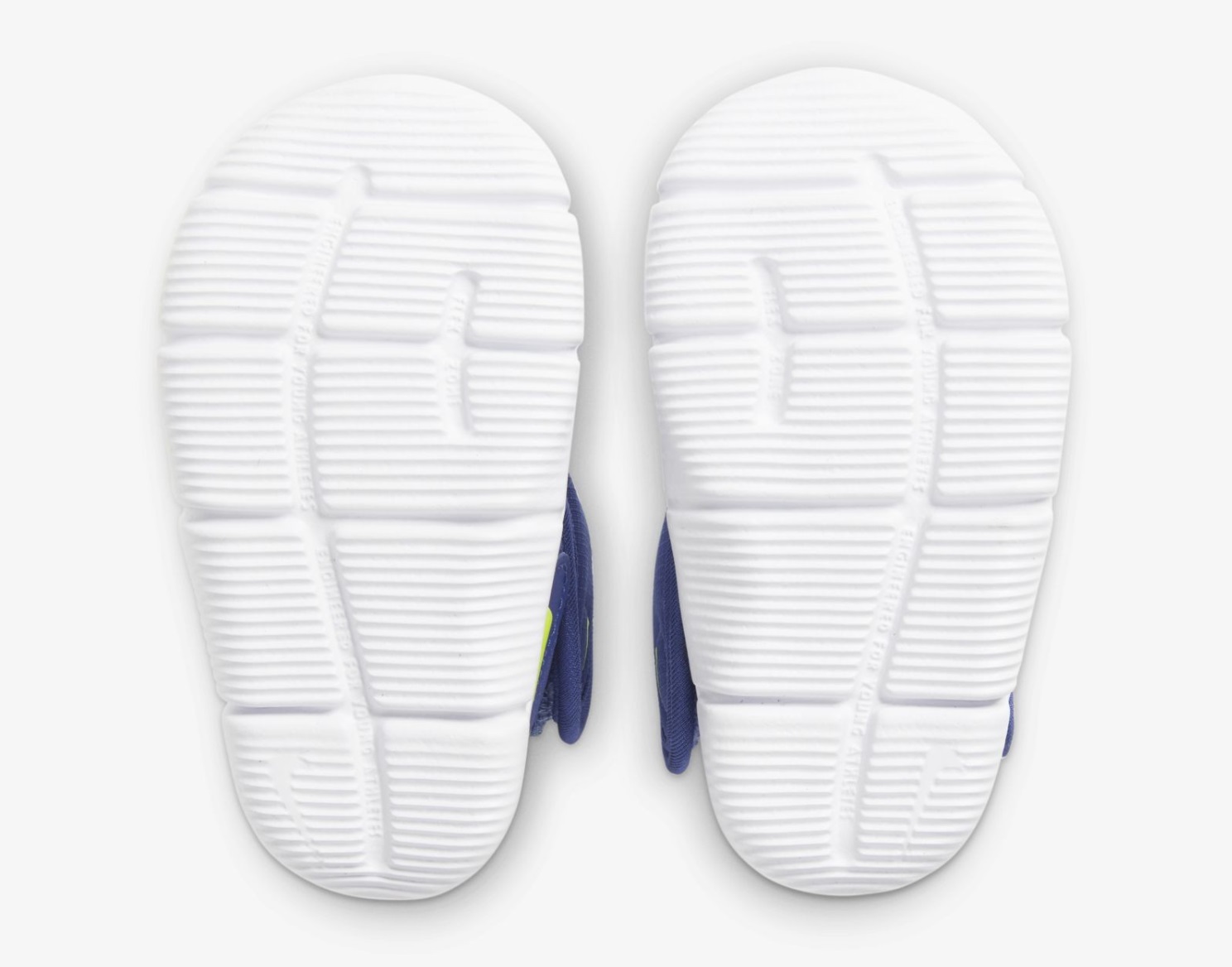 부드러운 폼이 아기발을 위한 쿠션 역할을 하며, 밑창의 조작패턴은 접지력과 지지력을 발휘합니다. 갑피의 재질은 플라스틱을 사용했으며, 중창은 가볍고 쿠셔닝이 우수한 인젝티드 파일론을 적용했습니다. 그리고 생산된 사이즈는 120-160 까지 제작되었습니다. 제조국은 인도네시아 나이키 입니다.