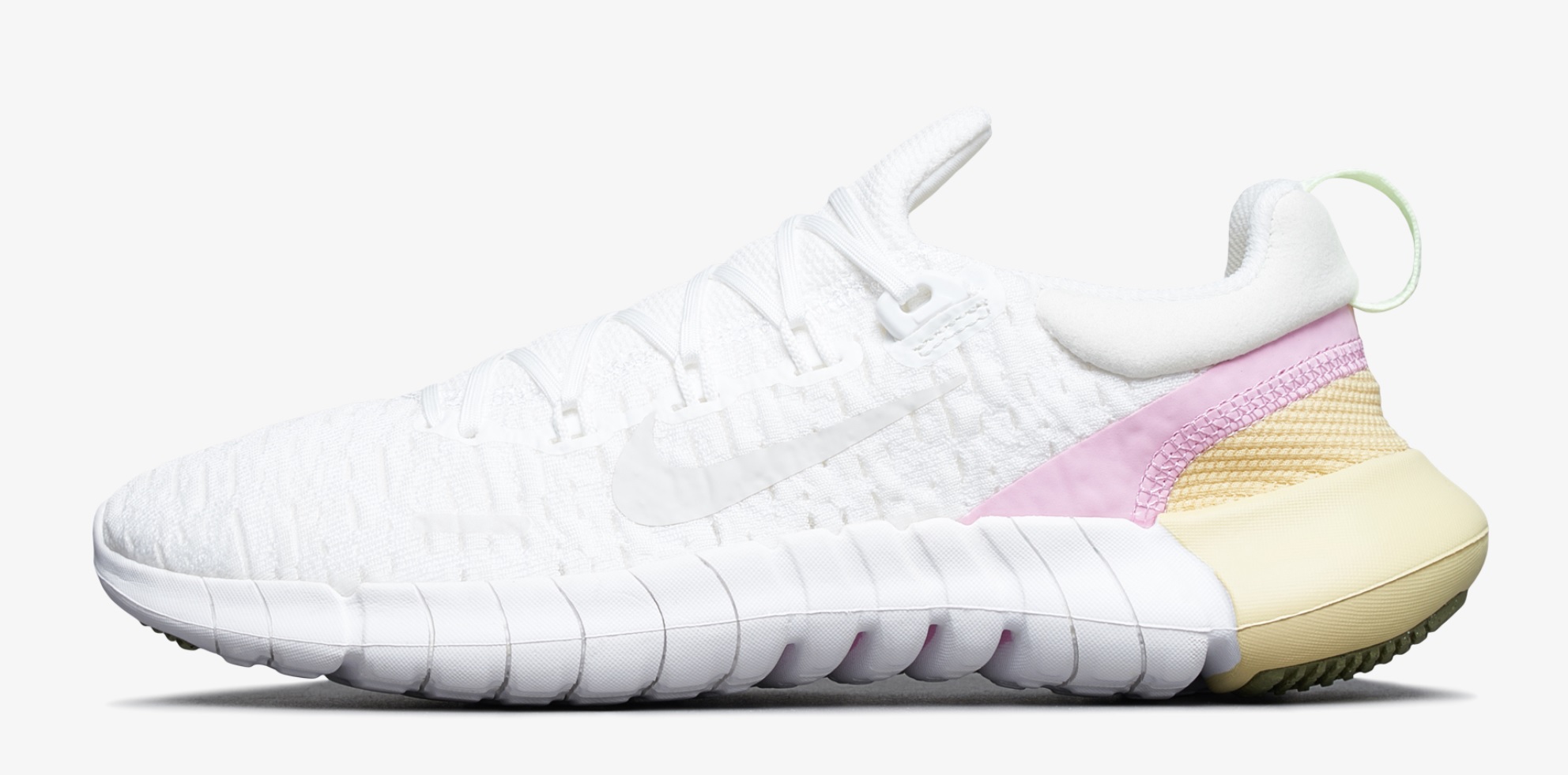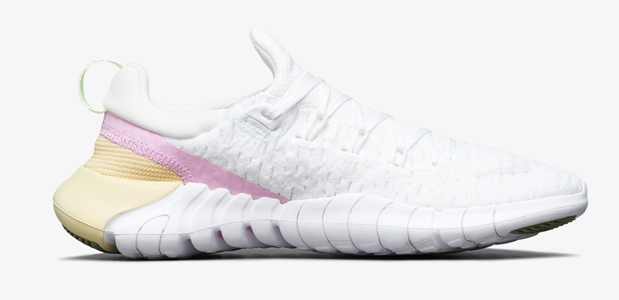 Outsole Bottom 의 조각패턴은 접지력과 지지력을 고려한 디자인 입니다. 그리고 신발 끈을 통과하는 옆면의 플라이와이어 기술로 중족부를 안정적으로 잡아 줍니다. 인전 프리 모델에서 많은 사랑을 받았던 뒤꿈치의 쿠셔닝을 동일하게 적용해 편안한 지지력 제공합니다. 뒤꿈치의 풀탭으로 신발을 신고 벗기 편리합니다.