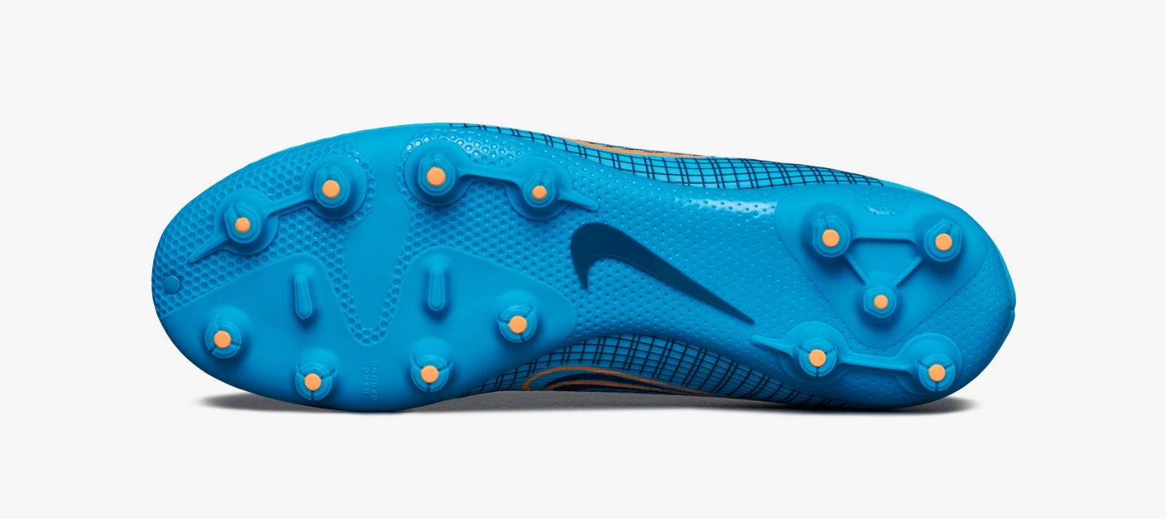 나이키 머큐리얼 베이퍼 14 아카데미 HG는 몰드 합성 갑피의 텍스처 패턴 덕분에 빠른 속도로 드리블할 때도 볼 컨트롤이 향상 됩니다. 그리고 하드 그라운드 지면을 고혀하여, 설계된 원뿔형 스터드가 탁월한 접지력을 제공하여, 빠른 볼 컨트롤과 방향 전환이 가능합니다.