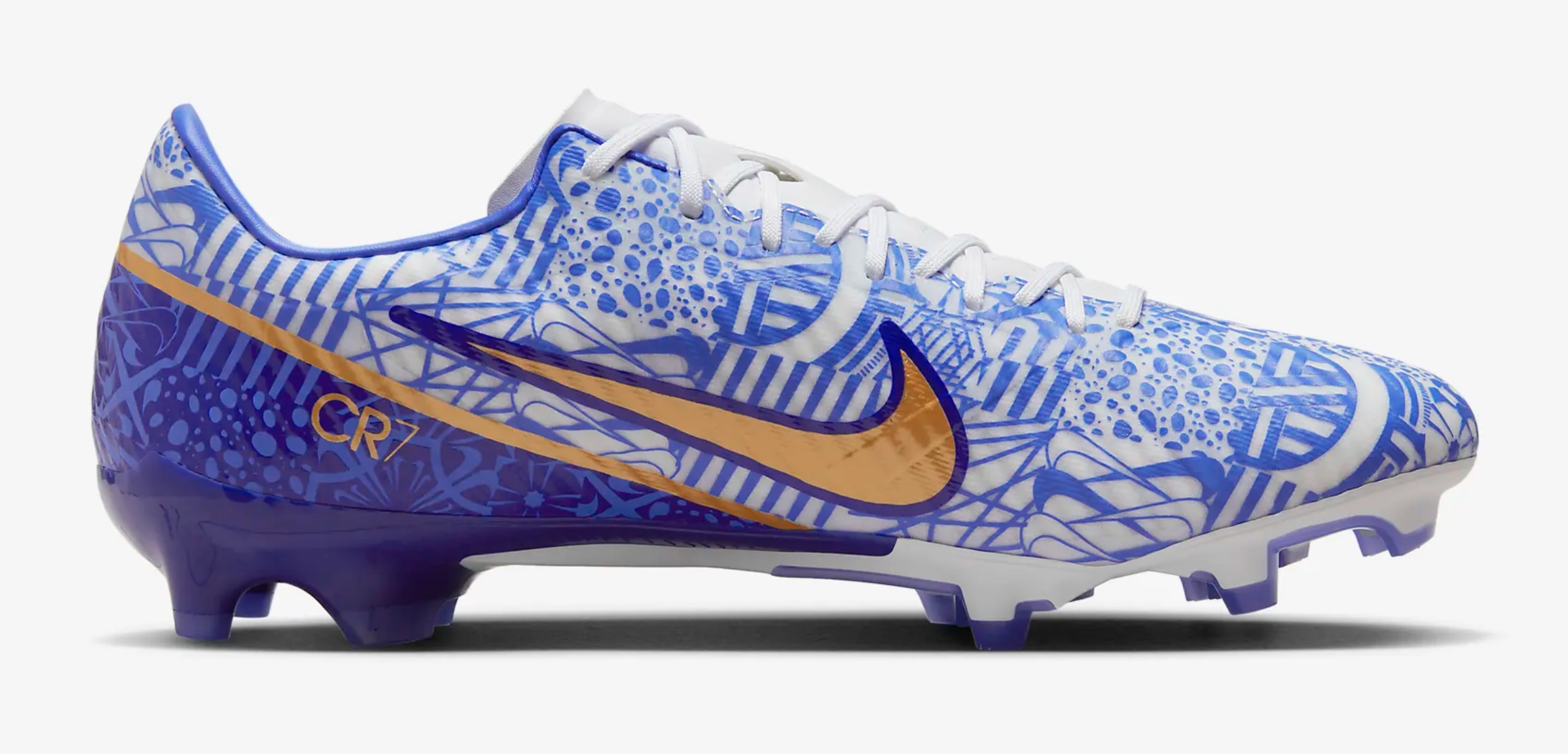 나이키 줌 머큐리얼 베이퍼 15 아카데미 CR7 MG 축구화는 아줄레호에서 영감을 얻다. 갑피 전체에 적용된 독특한 그래픽은 아줄레호 패턴으로 제작된 CR7의 지난 클리트 축구화를 기념합니다. 필드로 옮겨 온 줌에 환영 인사를 나이키 사상 처음으로 완전히 새로운 줌 에어 유닛을 개발했습니다. 모델의 특징은 스피드를 위한 디자인, 더욱 향상된 핏, 생생하게 느껴지는 볼 터치감 입니다.