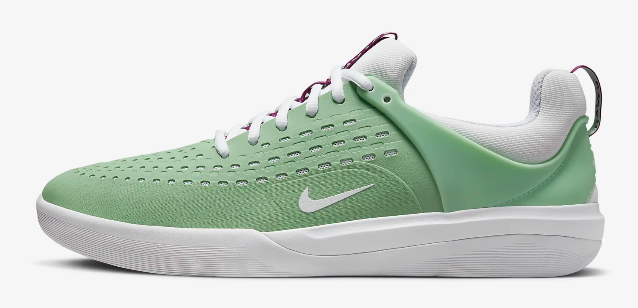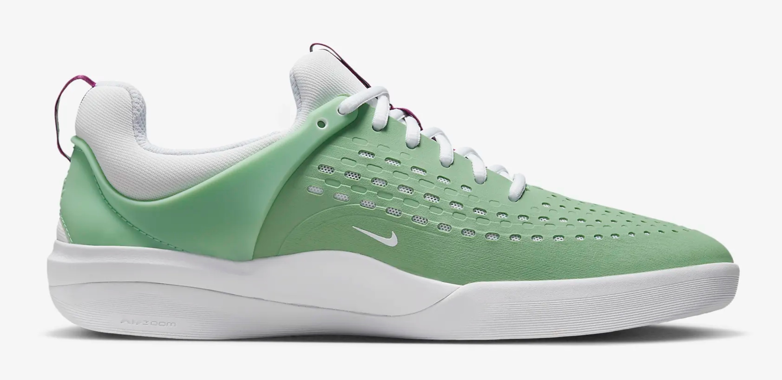 업퍼 디자인은 심플하면서 깔끔합니다. 갑피 베이스 컬러의 에나멜 그린은 산뜻함을 더했습니다. 그리고 3부 중창 및 밑창은 발에 가볍게 닿도록 설계되어 그립력과 유연성, 지지력이 뛰어나 착지 기술에만 집중할 수 있습니다. 줌 에어는 스케이트보드를 앞으로 밀고 나아가는 동안 추진력을 더해줍니다.
