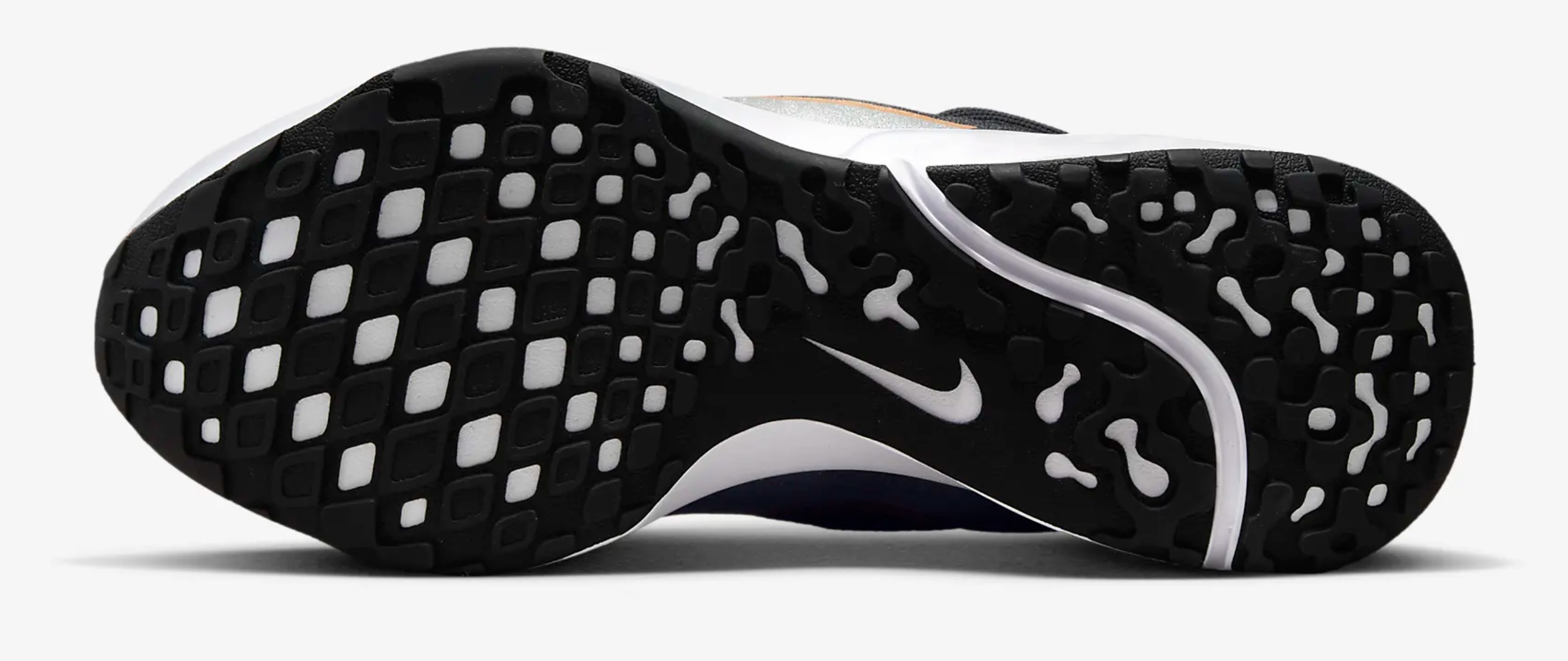 Outsole Bottom 의 조각패턴은 접지력을 고려한 디자인을 적용했으며, Forefoot 과 Heel 을 분리하여, 신발의 유연성과 경량화로 보행감과 착화감이 좋습니다. 뒤꿈치의 투명 에어솔 유닛으로 쿠셔닝 강화 시켰습니다. 제조국은 중국 나이키 입니다.