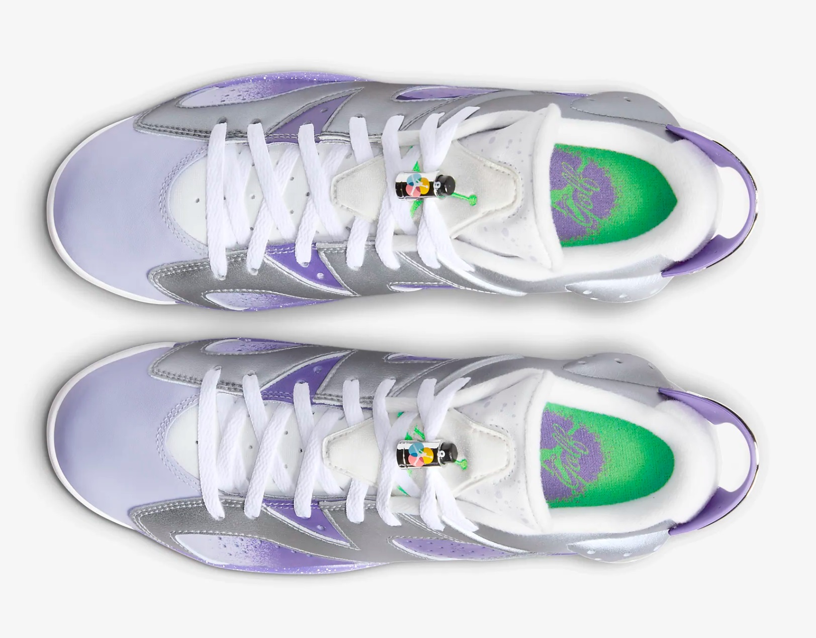 제품의 키워드는 여름을 위한 룩, AJ 6의 영감, 코스를 위한 접지력 입니다. 실버 오버레이는 틴셀타운의 VIP 감성을 표현하며, 스프레이 페인트 캔을 닮은 신발 끈 팁은 거칠고 어두운 그래피티 작품을 표현해 도시의 특별한 부분을 담아냈습니다. 생동감 넘치는 컬러가 각자의 개성이 뚜렷한 커뮤니티의 생기를 더욱 높여줍니다.
